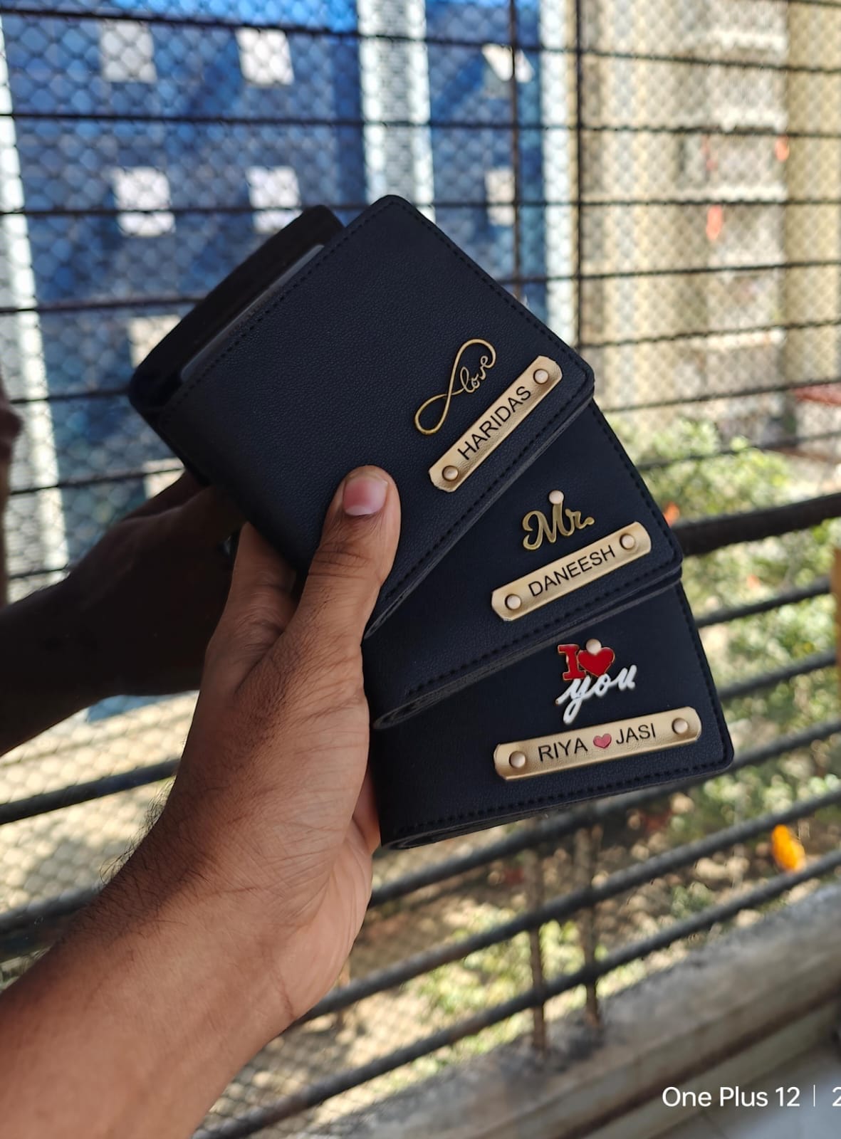Personalized men’s wallet made of*Indian PU Leather*r, with name and charm customization, slim design, and 6 color options to choose from and 74 different Options Available